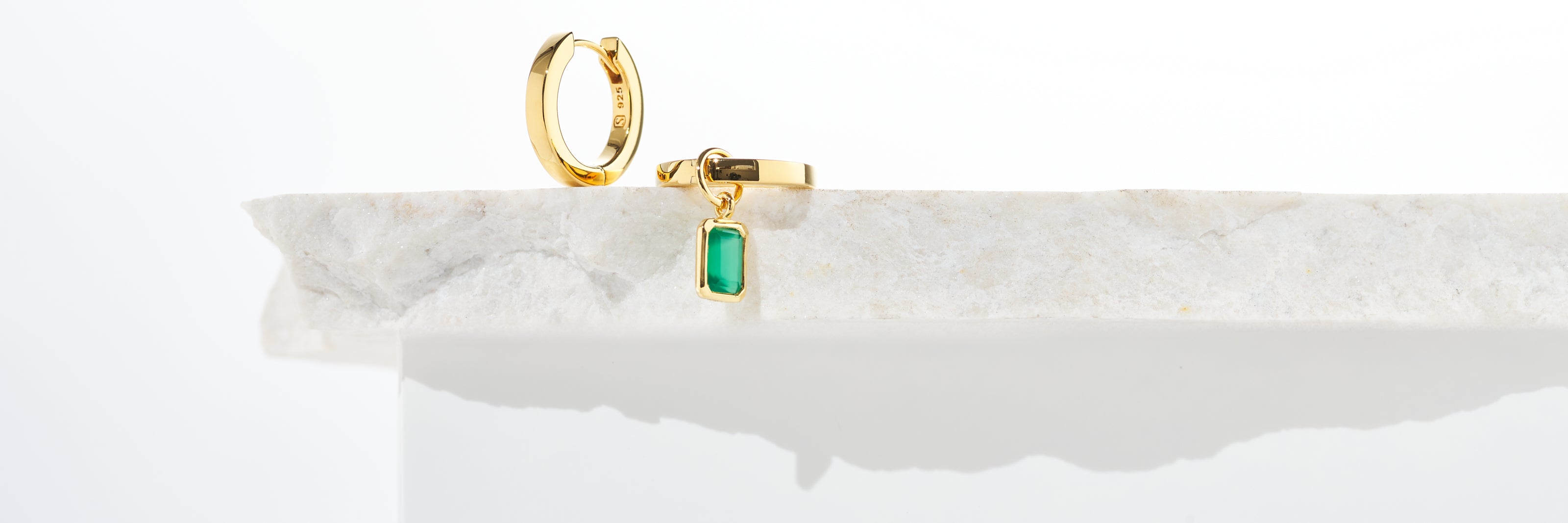 Green Onyx Huggie Set in 18k Gold Vermeil