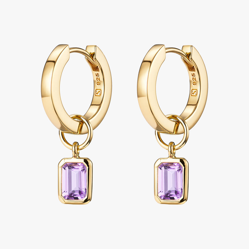 Emerald Cut Amethyst Gemstone Huggie Hoops