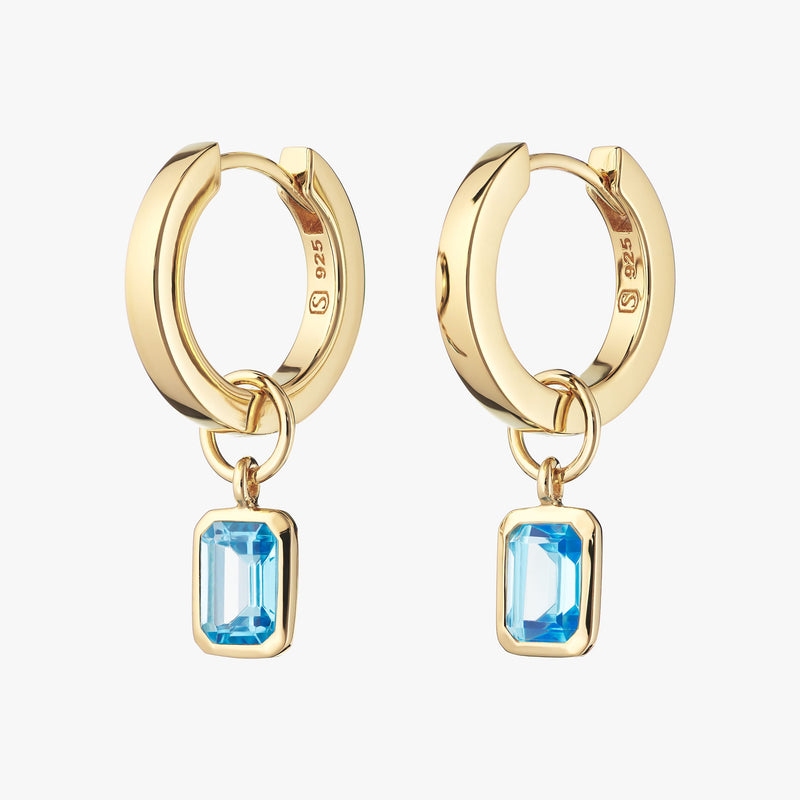 Elevate your style with our Blue Topaz Huggie Set in Gold Vermeil or Sterling Silver for a chic and modern vibe. Add Blue Topaz charms for a cool splash of colour, and switch them out anytime for a fresh, sophisticated look!